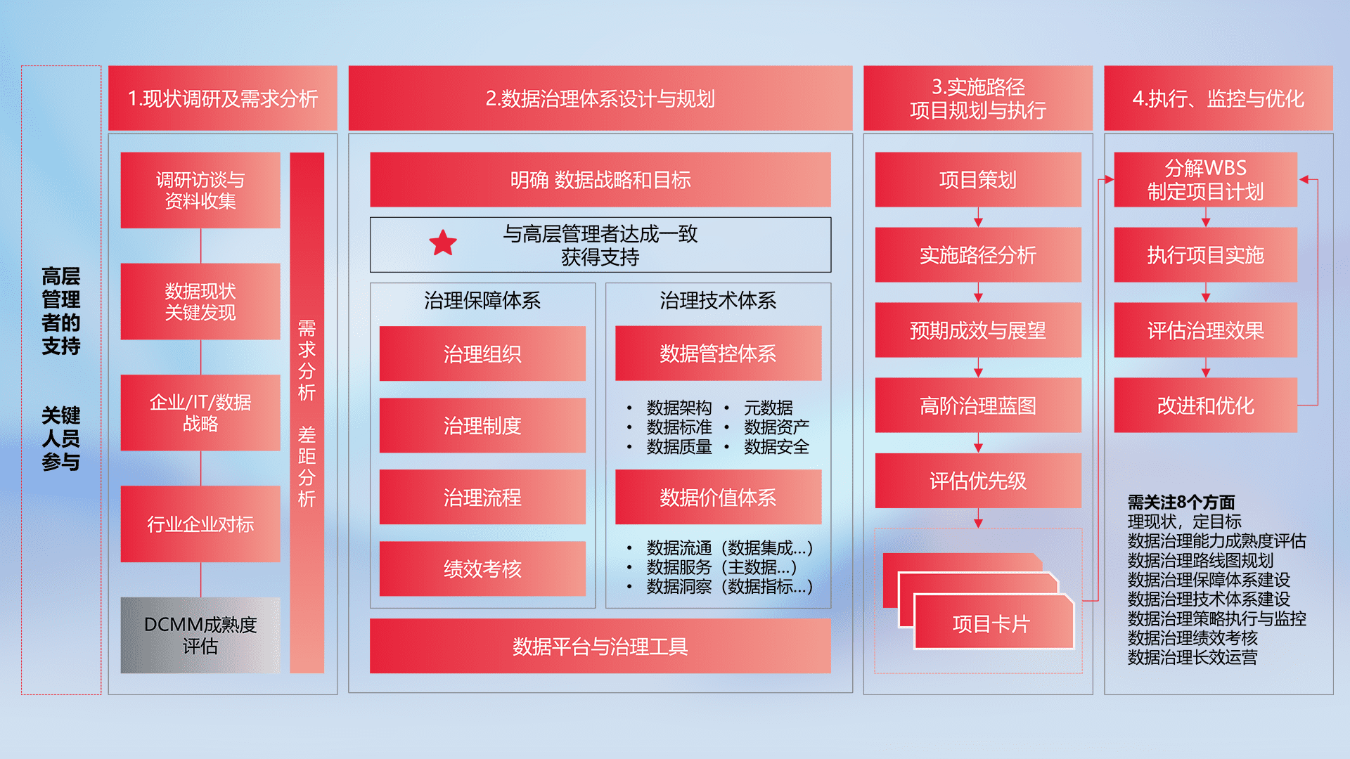 制定并执行统一的数据标准,,规范数据定义和格式,,,消除冗余和不一致性,,实现跨部门和跨系统的数据一致性,,,,为企业提供标准化的数据基础。。。。